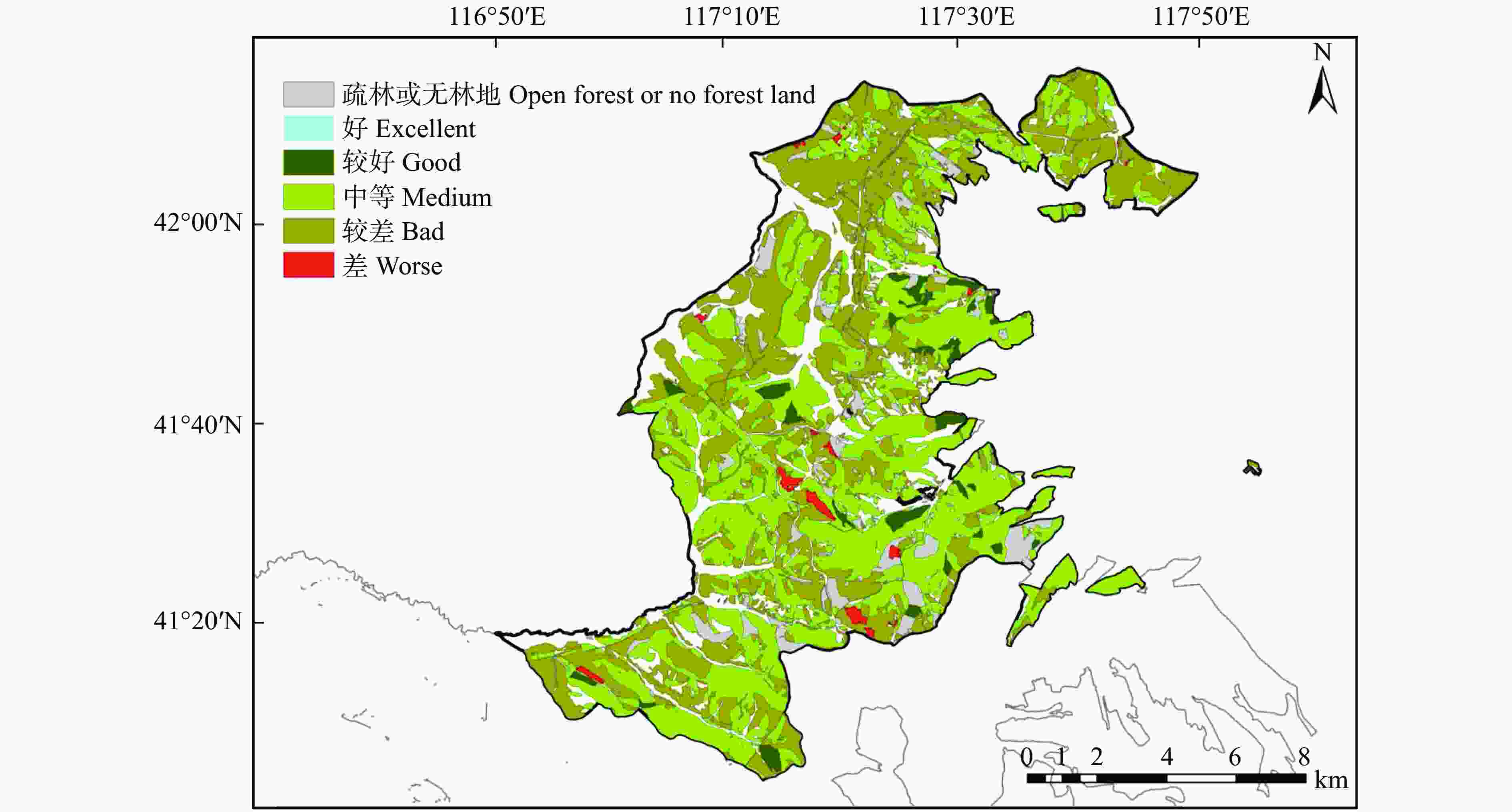 Method The ecological function grade of various forests in Beimandian Forest Farm in Saihanba had been evaluated based on Technical Regulations for Inventory for Forest Management Planning and Design (GB/T 26424−2010) with 8 evaluation factors of forest volume, forest naturalness, forest community structure, species structure, total vegetation coverage, canopy density, mean tree height and litter thickness.