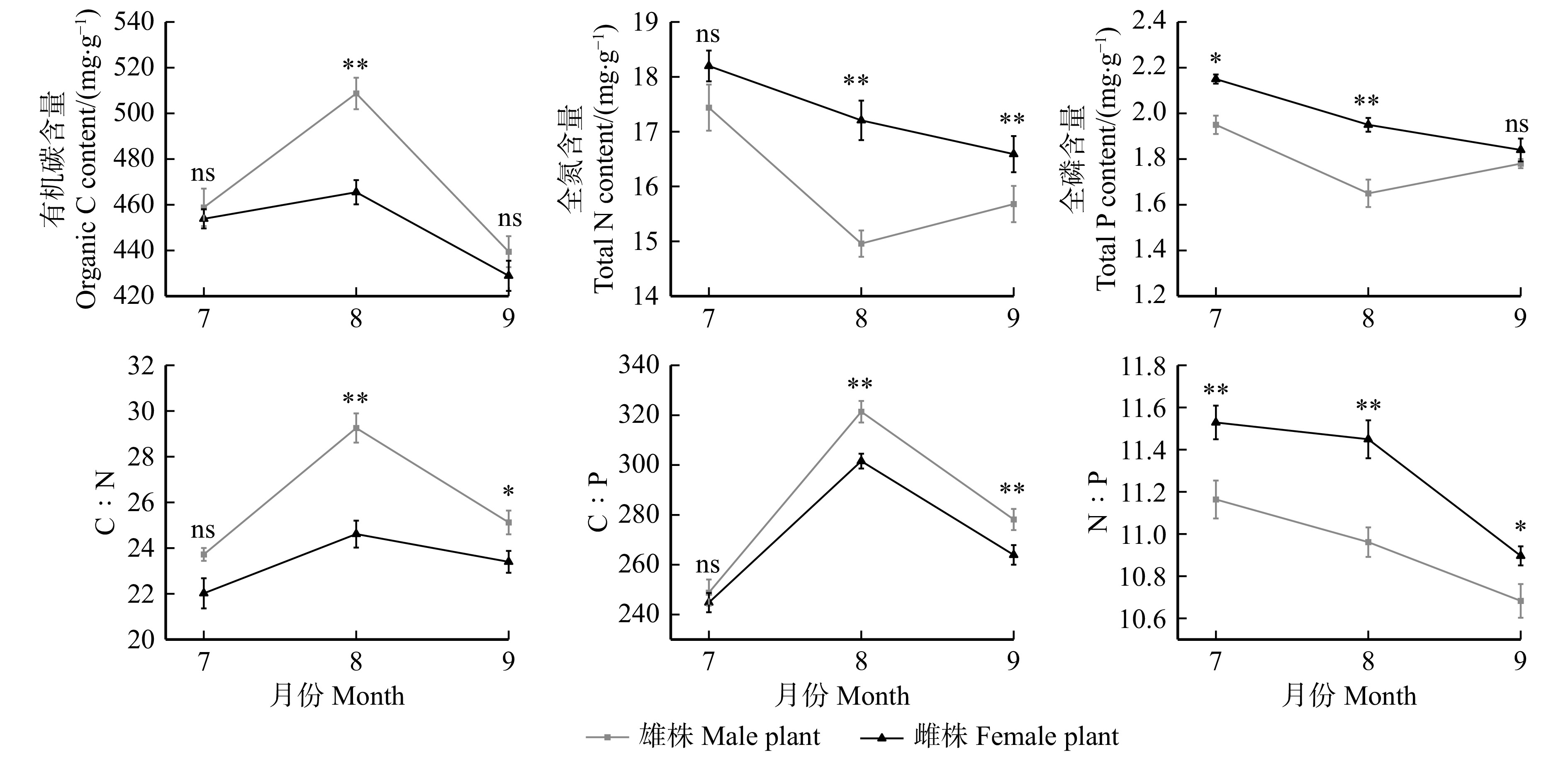 Conclusion Female plants have a reproductive cost compensation mechanism, which uses higher photosynthetic capacity for reproductive compensation, and increases resource input for growth and reproduction at the expense of chemical defense, and adopts a ‘radical’ adaptive strategy, while male plants invest more resources for defense and adopt a ‘conservative’ adaptive strategy.